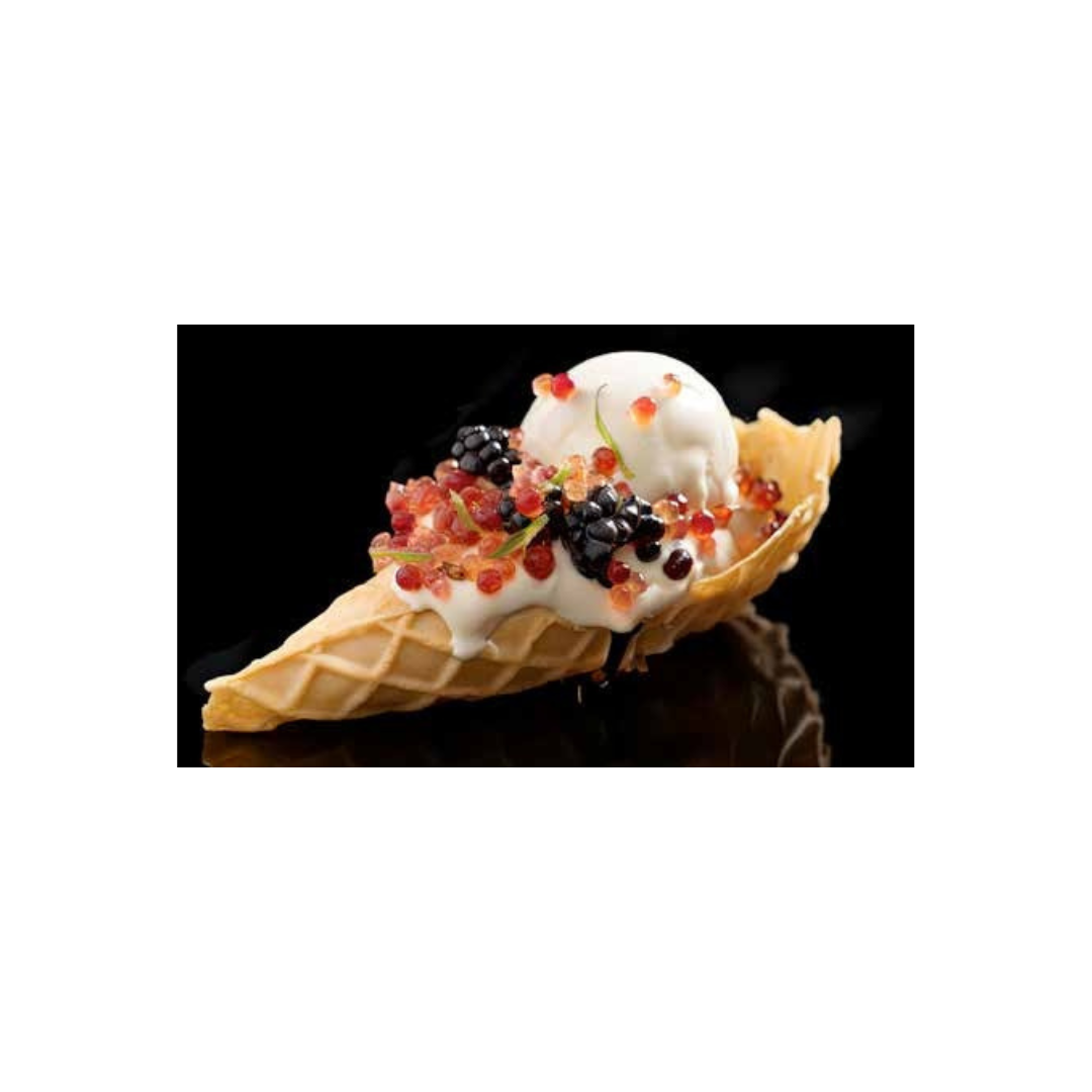 The balsamic pearls add a touch of molecular gastronomy encountering the most traditional symbol of Modena: Balsamic Vinegar. When eaten, they provide a surprising and pleasant explosion of taste besides transforming any dish in a true spectacle.